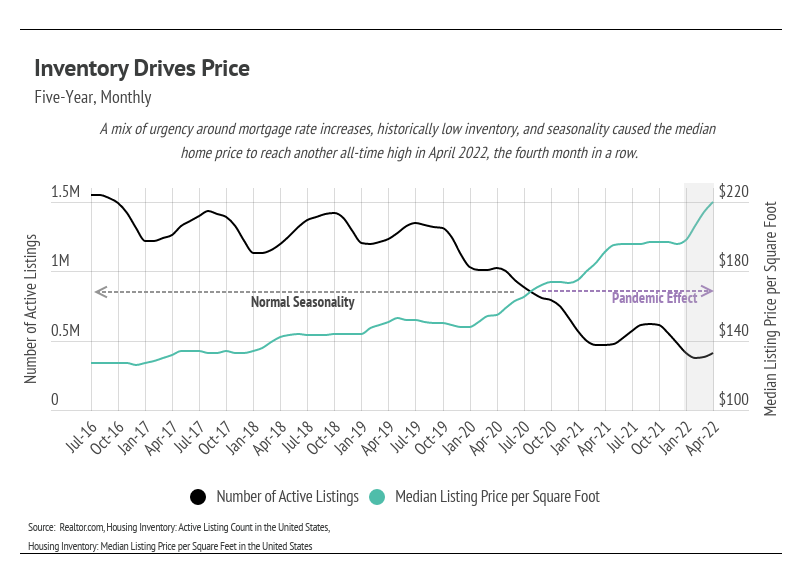 The second quarter of 2022 will indicate whether the market is moving toward or away from normalization. April data show that the number of new listings decreased slightly, signaling potential supply issues in the spring and summer seasons.